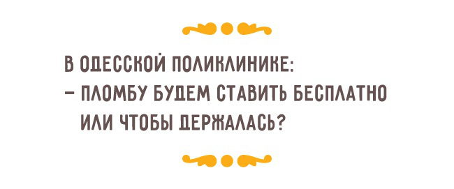 — Первый раз я женился в Киеве. Неудачно. Второй раз я таки женился в Одессе. Тоже неудачно. А третий раз я женился в Харькове и должен таки сказать очень удачно. Теперь всегда буду жениться в Харькове.